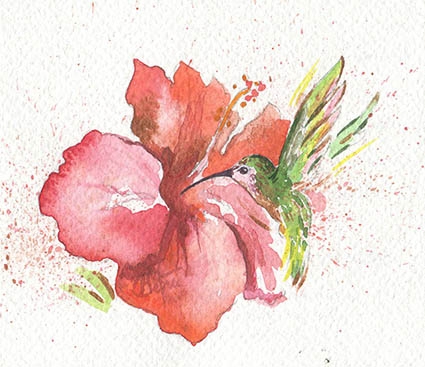 Hammingbird on red hibiscus mini